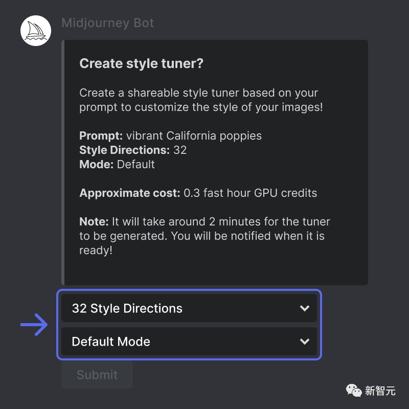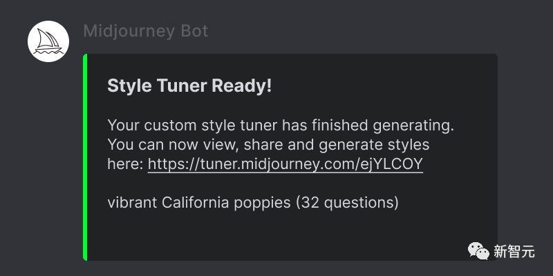 当「风格调谐器」准备就绪时,Midjourney机器人会向你发送一条直接消息,其中包含指向调谐器的链接。