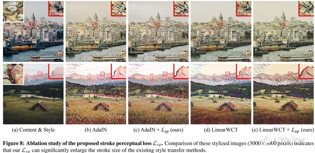 除了原始损失外,该URST还引入了一种辅助损失函数,称之为笔画感知损失(stroke perceptual loss),用于进一步改善超高分辨率风格迁移的质量。该损失的核心在于:对风格块