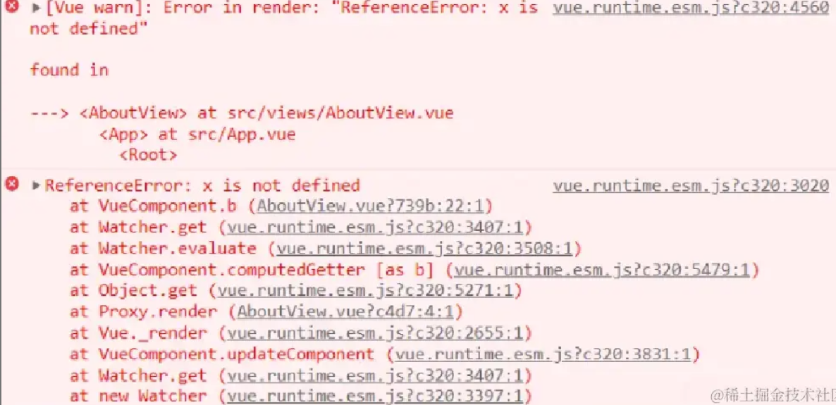在Vue中我们有时候会在编写代码时出现错误,在template中引用了未定义的变量,导致报异常,这种异常在控制台只会报[Vue warn]并不会报 ReferenceError