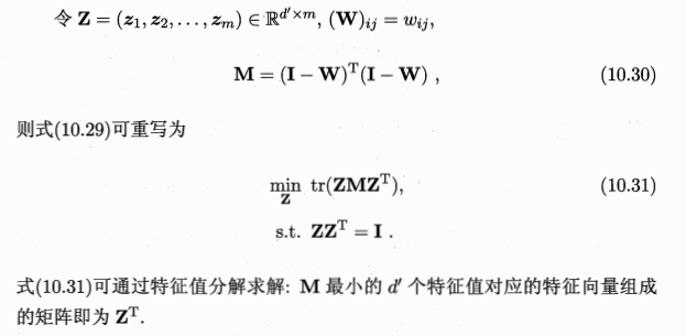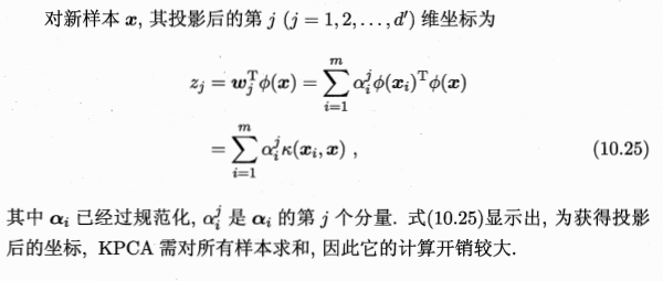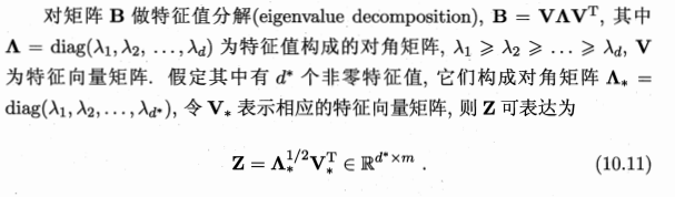 从MDS算法的描述中我们可以知道:MDS先求出了低维空间的内积矩阵B,接着使用特征值分解计算出了样本在低维空间中的坐标,但是并没有给出通用的投影向量w,因此对于需要降维的新样本无从下手,书中给出的权宜之计是是将训练样本的高维空间坐标作为输入、低维空间坐标作为输出,训练一个回归学习器来对新样本的低维空间坐标进行预测。