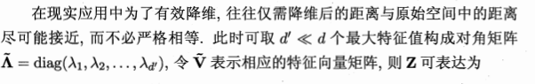令降维后的样本坐标矩阵Z被中心化,中心化是指将每个样本向量减去整个样本集的均值向量,故所有样本向量求和得到一个零向量,即