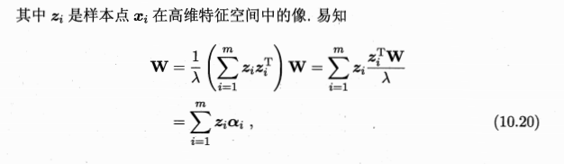 若核函数的形式已知,即我们知道如何将低维的坐标变换为高维坐标,这时我们只需先将数据映射到高维特征空间,再在高维空间中运用PCA即可。但是一般情况下,我们并不知道核函数具体的映射规则,例如:Sigmoid、高斯核等,我们只知道如何计算高维空间中的样本内积,这时就引出了KPCA的一个重要创新之处:即空间中的任一向量,都可以由该空间中的所有样本线性表示。