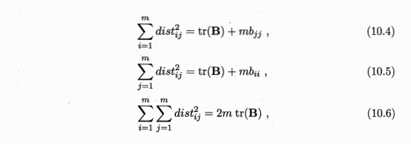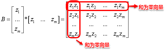 这样易知:矩阵B的每一列以及每一列求和均为0,因为提取公因子后都有一项为所有样本向量的和向量。