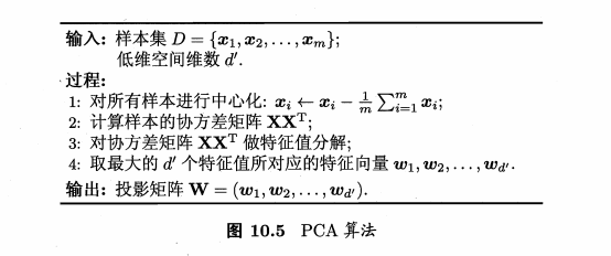 因此只需对协方差矩阵进行特征值分解即可求解出W,PCA算法的整个流程如下图所示: