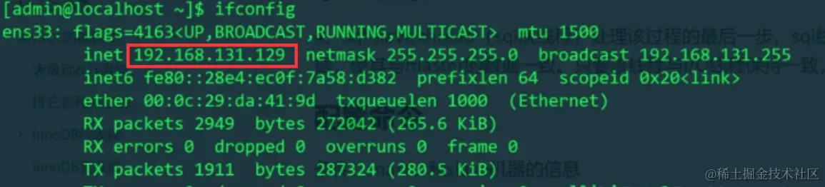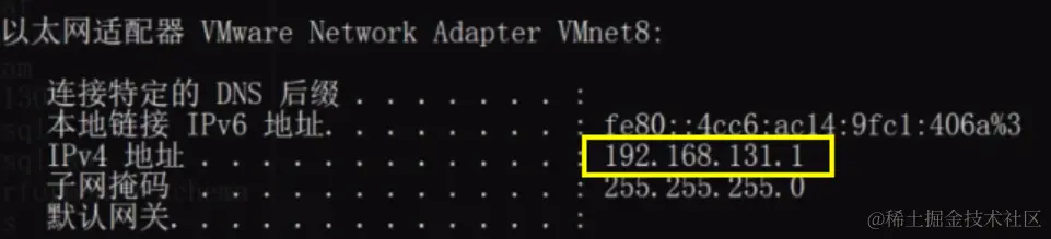 虽然我们在Linux上查看的ip地址是192.168.131.129,但我们创建账户登录时不写这个ip,写的是192.168.131.1。因为我这里虚拟机用的是NAT模式(桥接模式是虚拟机直连物理网络,和物理机的网络地位相同),虚拟机(master)和物理机(slave)通信的时候,虚拟机先把数据发送到网关192.168.131.1(默认与VMnet8通信),192.168.131.1再转发到物理机,所以物理机接收到的是192.168.131.1的数据,故我们在master上为slave创建账户的时候,应该写192.168.131.1