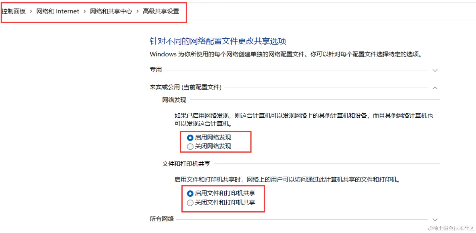 如果物理机可以ping通虚拟机,而虚拟机无法ping通物理机,需要在控制面板的网络中心启用网络发现