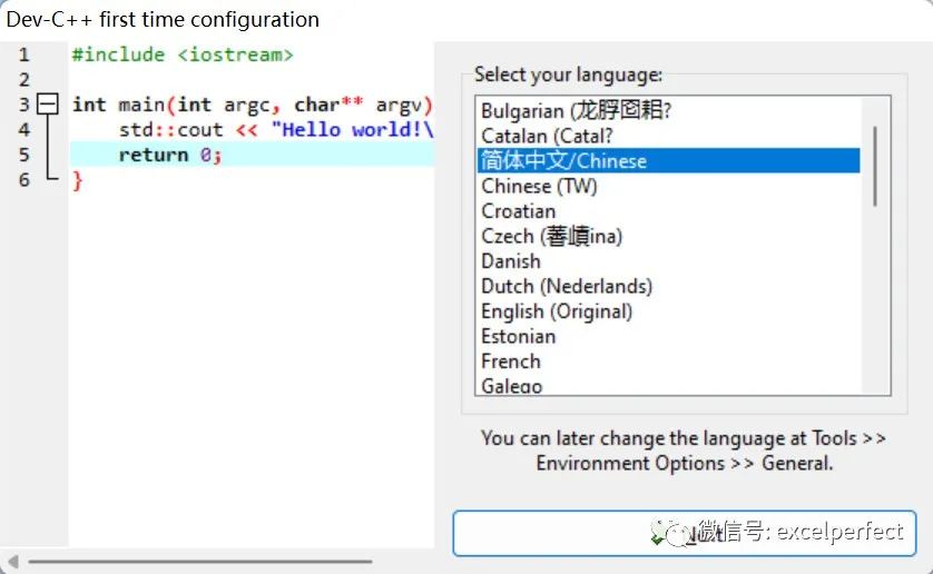 完成安装并首次启动编译器,会出现配置窗口。选择语言,当然是简体中文,如下图2所示。