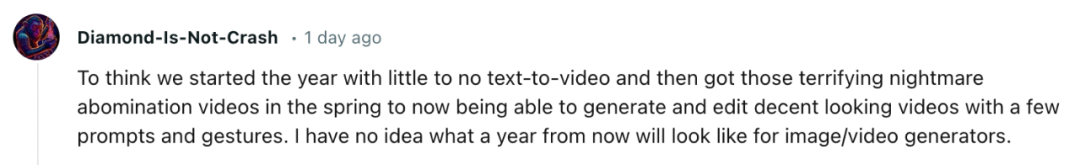 网友:我都不敢想象一年后的视频技术会有多先进。