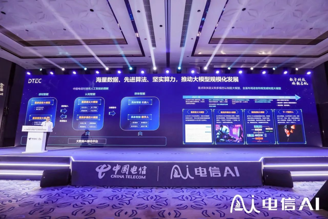 在近日举办的 2023 年数字科技生态大会人工智能与数据产业发展合作论坛论坛上,我们见到了中国电信星辰系列大模型的最新升级,以及针对上述问题所提出的一系列技术创新。