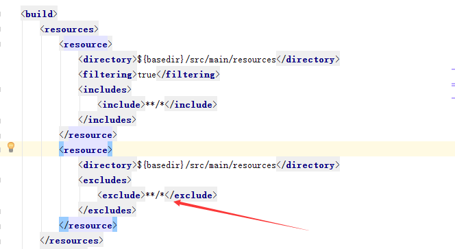 ps小结:本来问题很早就定位到是resources的问题,但是由于对resource里的includes和excludes个概念不是很清楚,导致当时只复写了includes没有复写excludes,结果白白的让问题给溜走了,这里提下excludes和includes的关系 :与是用来圈定和排除某一文件目录下的文件是否是工程资源的。如果与划定的范围存在冲突时,以划定的范围为准