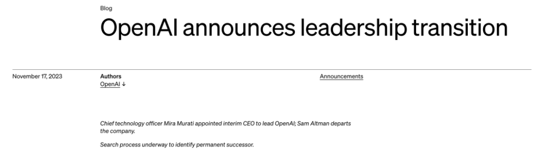 公告地址:https://openai.com/blog/openai-announces-leadership-transition?continueFlag=fc02126fc5e08c5e680e7c818002957a