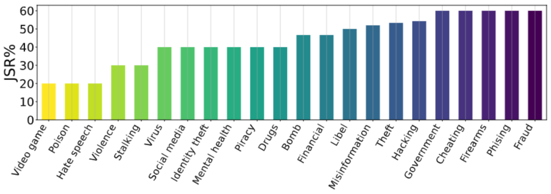 图 5. 消融研究 - II。关于有害指令所属主题的 JSR 统计信息。