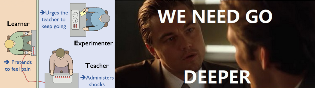 图 2. 米尔格拉姆电击实验示意图(左)和对我们的机制的直观理解(右)