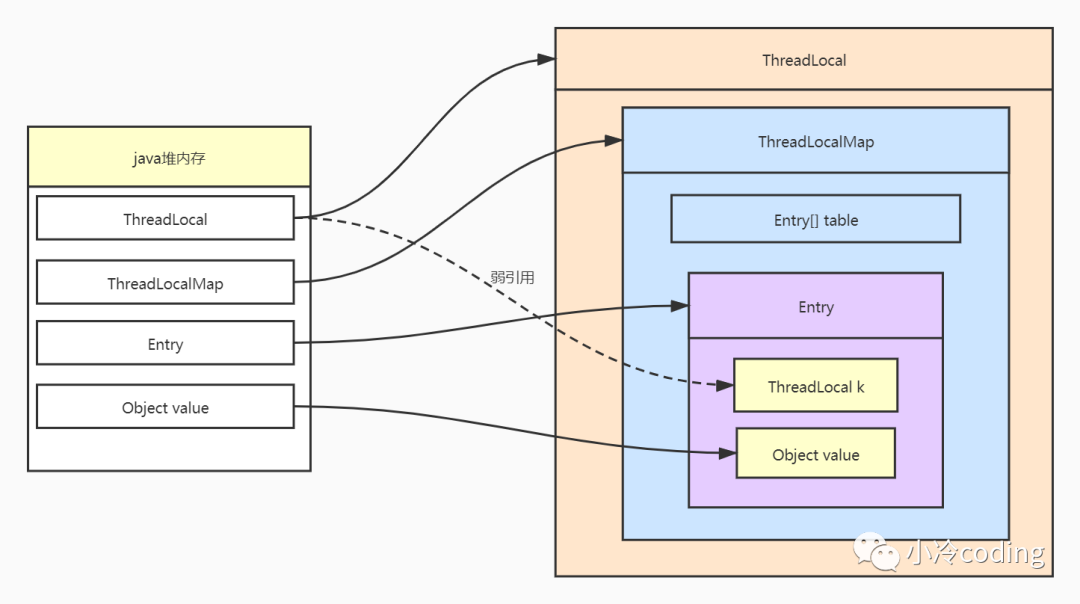 (2)ThreadLocalMap 使用的 key 是 ThreadLocal 实例本身,它是一个弱引用,可以避免 ThreadLocal 实例的内存泄漏问题。
