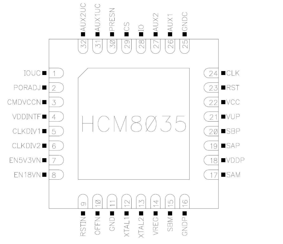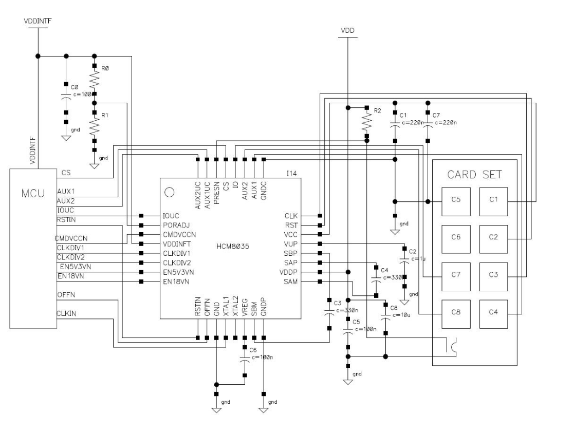 HCM8035是一款简洁且低成本的智能IC卡模拟接口芯片。内嵌升压模块,支持5V,3V,1.8V全电压读写。具有全面的安全保护机制,包括ESD保护,端口短路保护,电源上掉电保护。外围元件数目少,采用QFN32L封装。