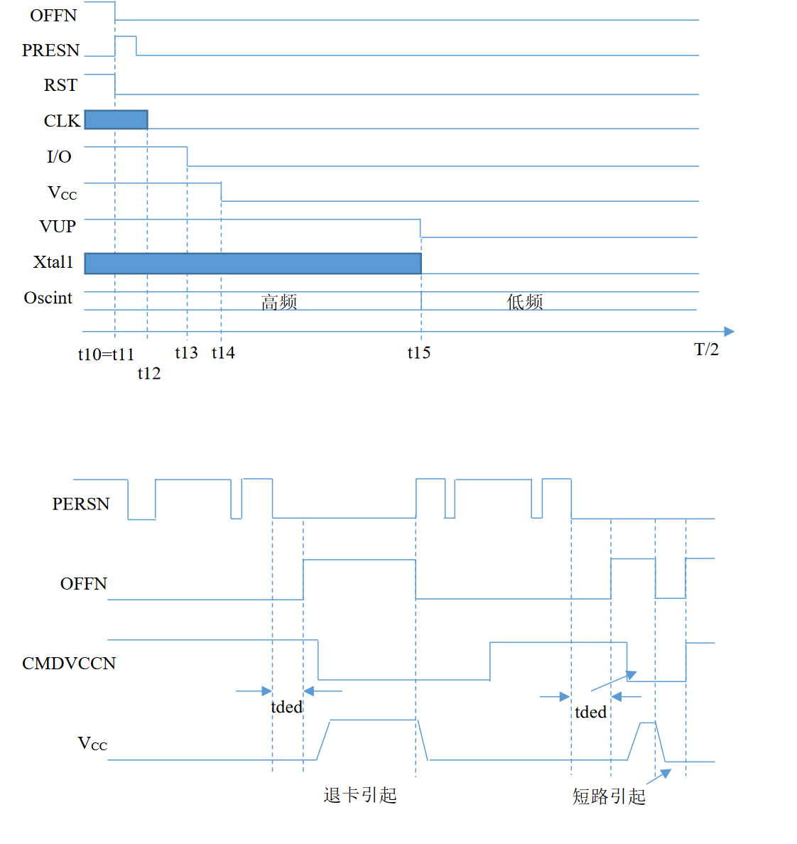 2、 CMDVCCN 处于低的状态(正在读卡周期):OFFN 立即拉低,退出激活,直到 CMDVCCN