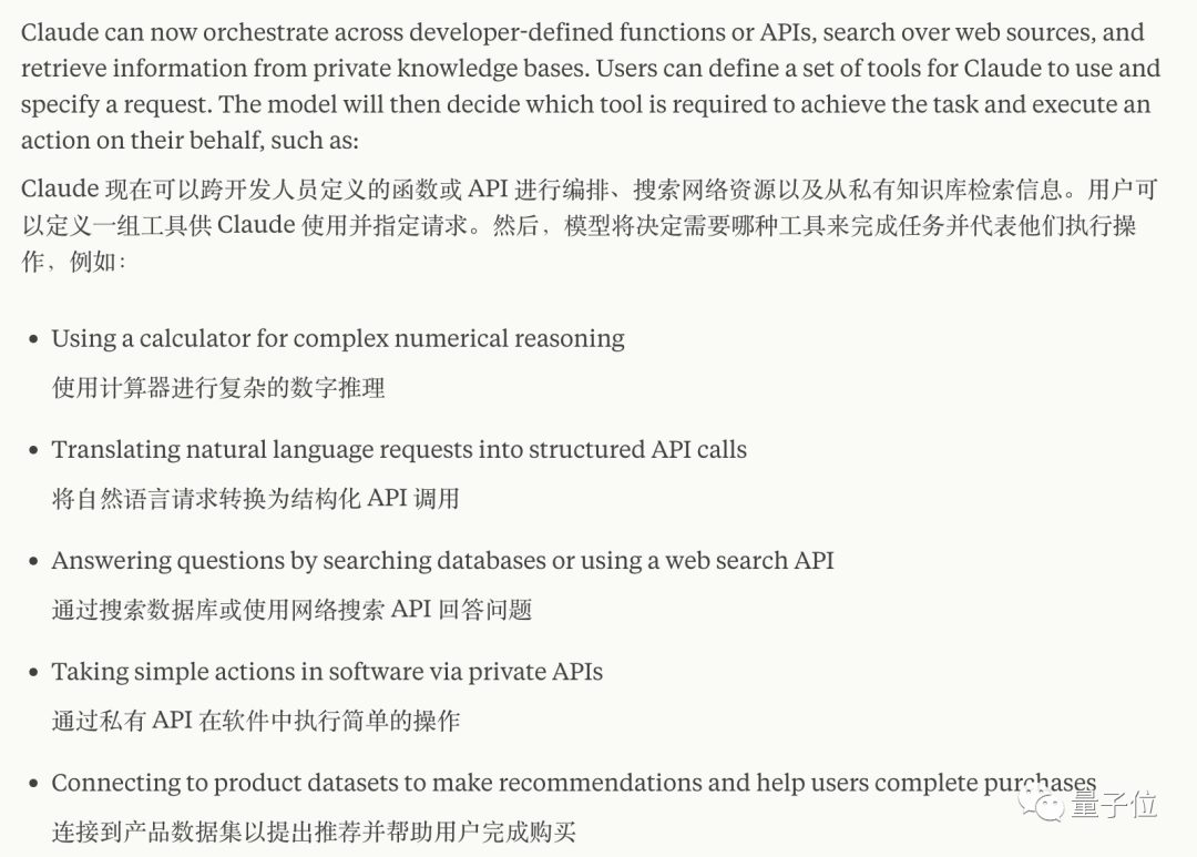 一是支持调用其他应用,从而实现访问在线内容、解决数学问题,连接私有API和自建知识库等操作。