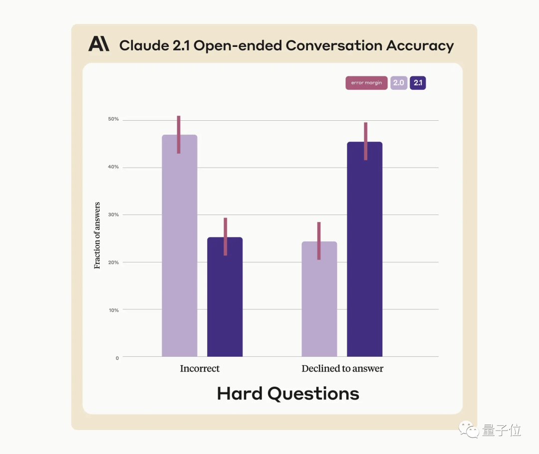 除了长度的增加,Claude 2.1的回答准确率也变得更高了。
