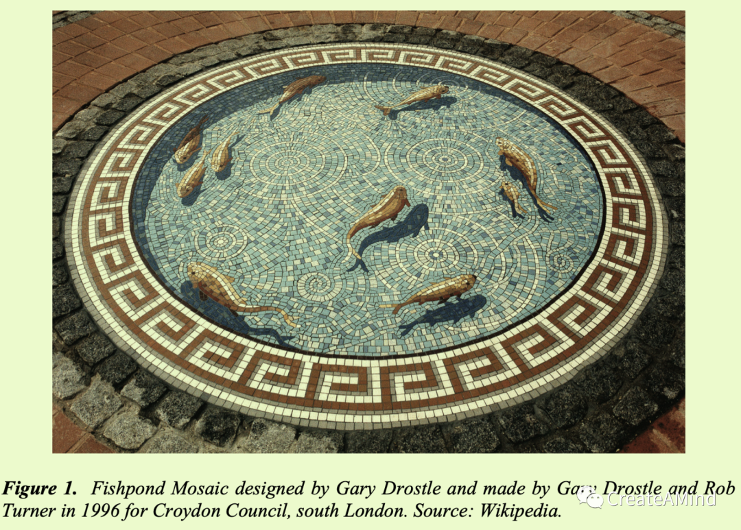 图一。鱼池马赛克由Gary Drostle设计,由Gary Drostle和Rob Turner于1996年为伦敦南部的克罗伊登议会制作。来源:维基百科。