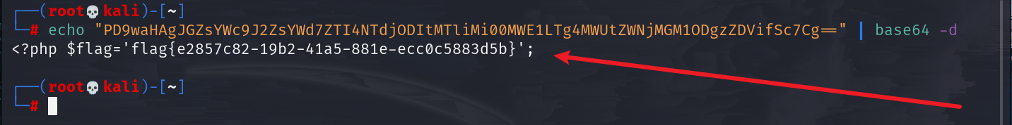 PD9waHAgJGZsYWc9J2ZsYWd7ZTI4NTdjODItMTliMi00MWE1LTg4MWUtZWNjMGM1ODgzZDVifSc7Cg==