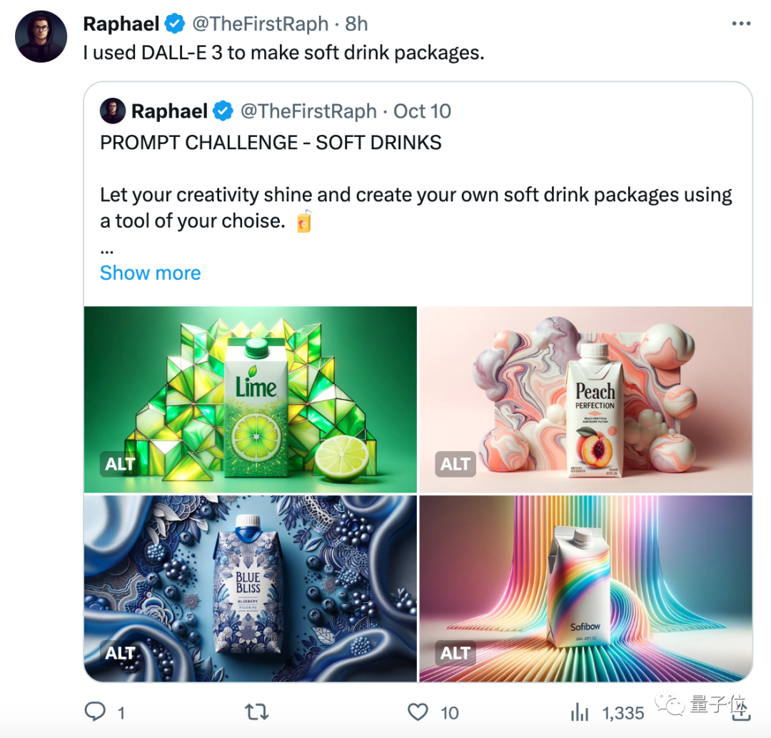 有网友表示,DALL·E 3的出现真正给设计圈带来了改变,例如设计饮料包装等: