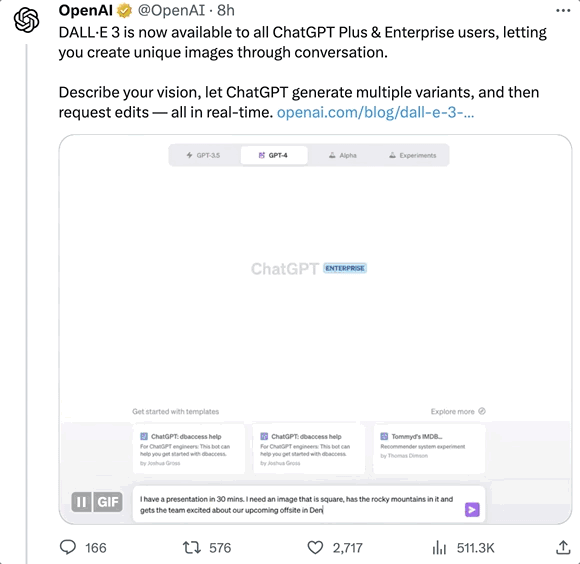 除了这篇论文以外,OpenAI这次还公布了DALL·E 3的另一动向——向ChatGPT Plus和企业版开放。