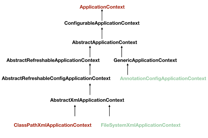 ApplicationContext是一个接口,ClassPathXmlApplicationContext和AnnotationConfigApplicationContext是两个比较常用的实现类,前者基于xml来使用,后者是基于注解来使用。而在 SpringBoot默认是应用了后一种。而xml方式和注解方式的异同点,或者是注解对于xml方式的增强点在虽然两者都能让开发者从宏观上对于项目有概况的了解,但是xml方式直接runtime时才会暴露出问题,而注解方式在compile期间就能让你对配置进行验证。