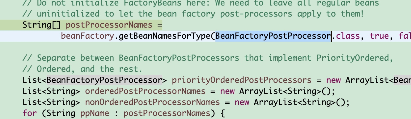 BeanFactoryPostProcessorPriorityOrdered优先级接口的BeanFactoryPostProcessor、postProcessor.postProcessBeanFactoryOrdered顺序接口的BeanFactoryPostProcessor、postProcessor.postProcessBeanFactory()BeanFactoryPostProcessor、postProcessor.postProcessBeanFactory()