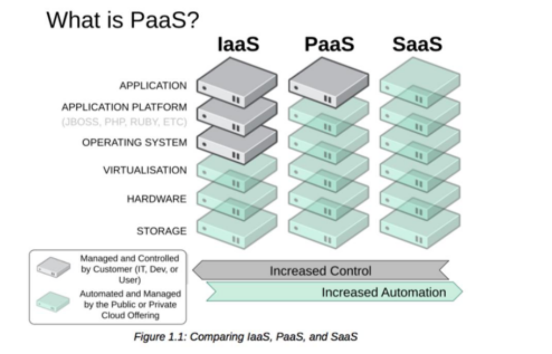 (2)PaaS (平台即云):在基础机构上增加了平台服务