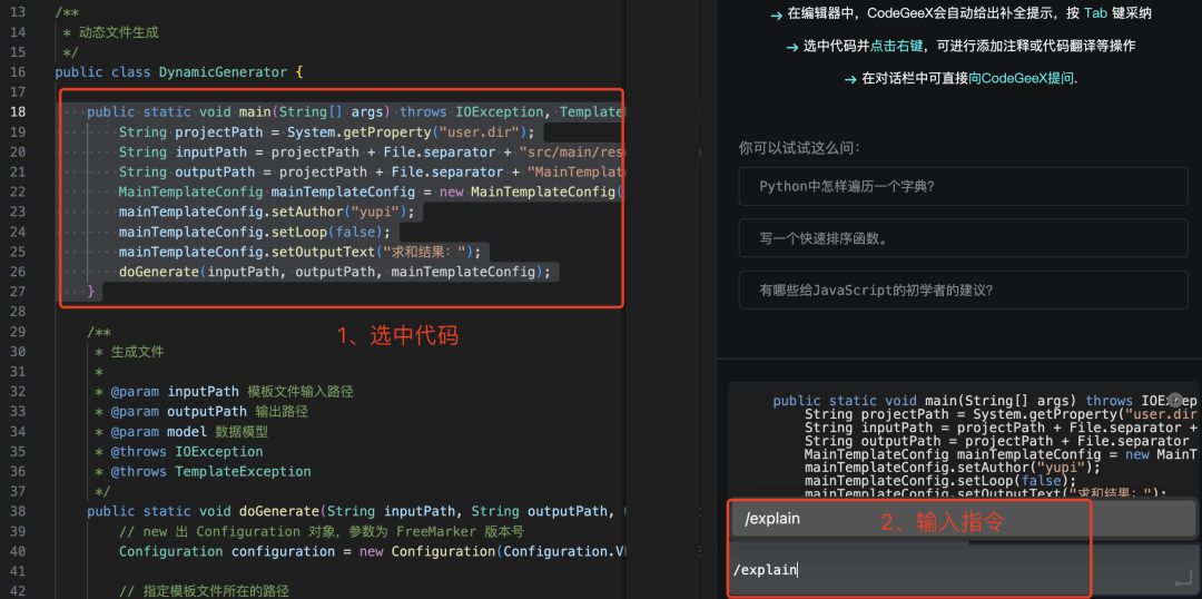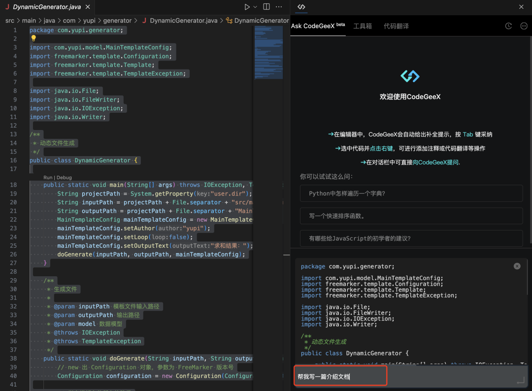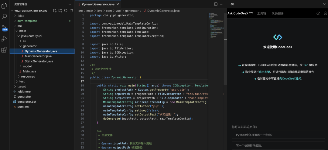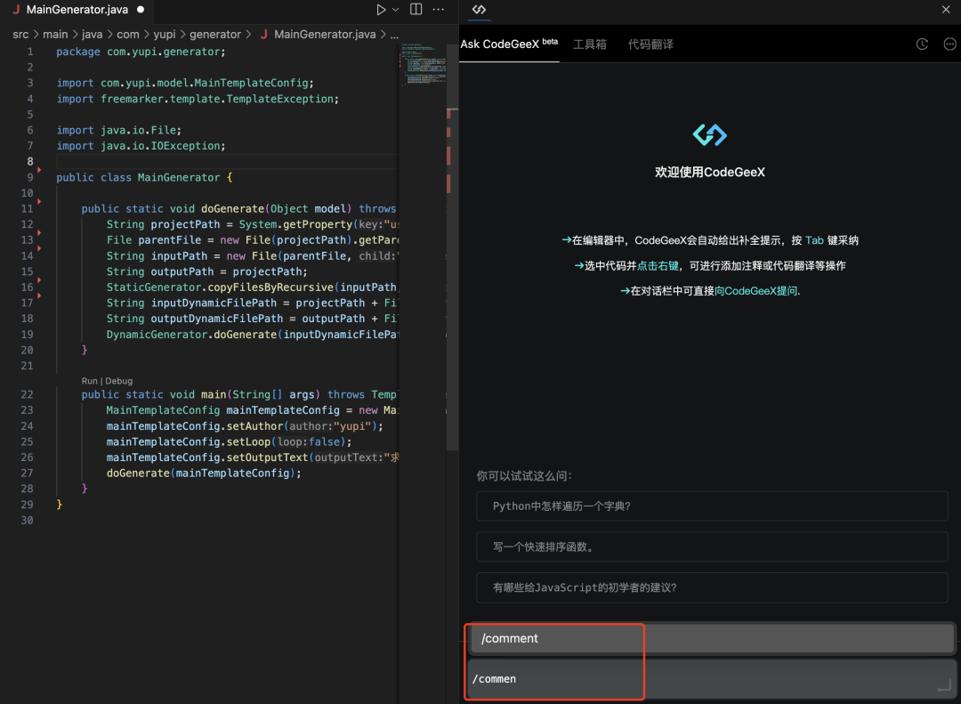 只需几秒钟,CodeGeeX 插件就会自动为你的代码补充详细的注释!