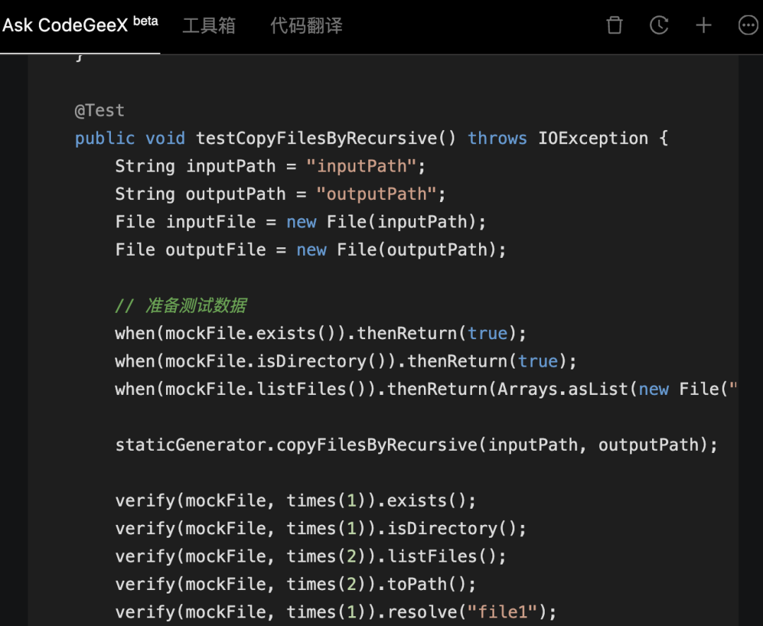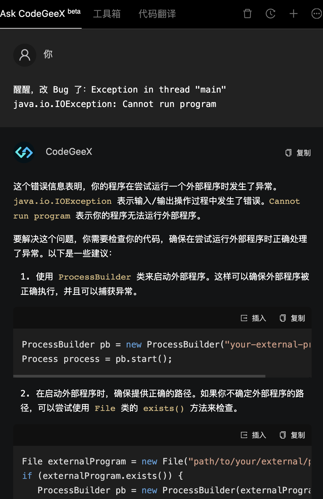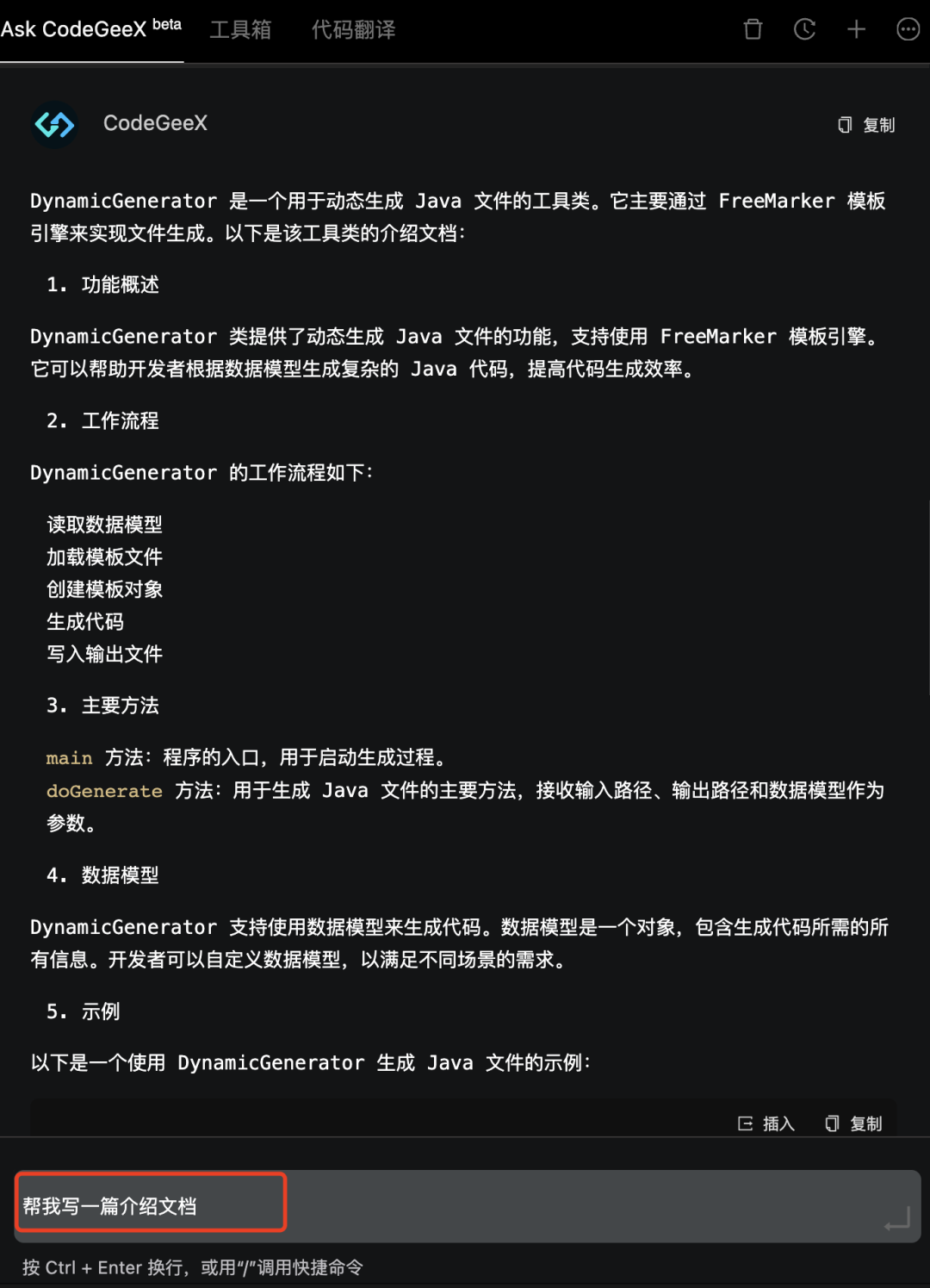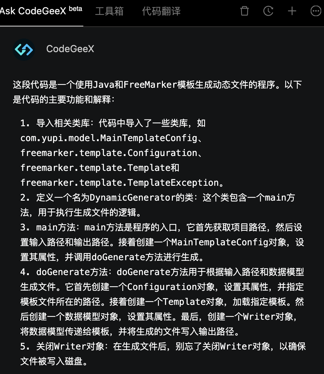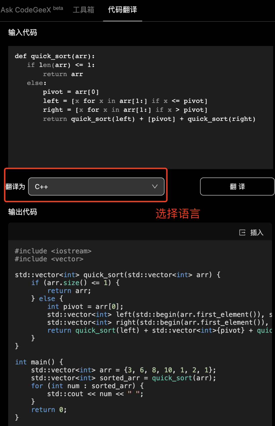 最后介绍的功能是代码翻译,这是我大学时期就幻想过的一个功能,可以把我的 C++ 课设的代码直接转成 Java 代码,拿去交 Java 课设的作业。