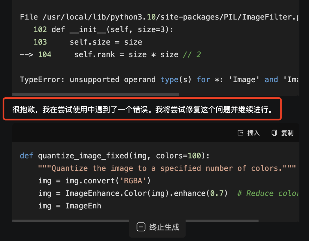 理论上只要 Python 程序能做的事情,AI 都能操作 Python 实现。但由于现在 AI 能力有限,现实可能并没有那么顺利,你可能会看见 AI 自我拉扯的名场面: