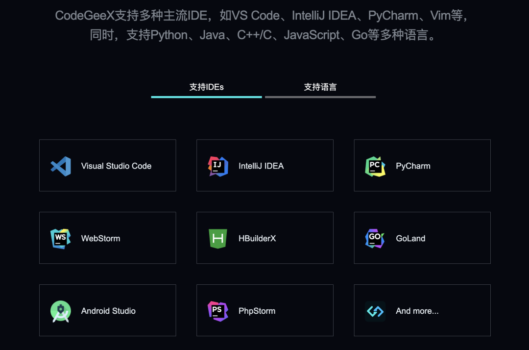 首先安装 CodeGeeX 工具,可以直接在官网安装,也可以在主流 IDE 的插件市场里安装。