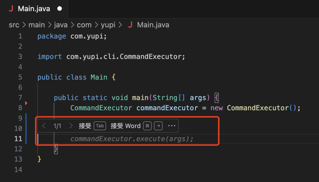 这时,AI 就是我们得力的程序助手,我们只需要按照正常的习惯编写代码,AI 就会持续给我们代码提示: