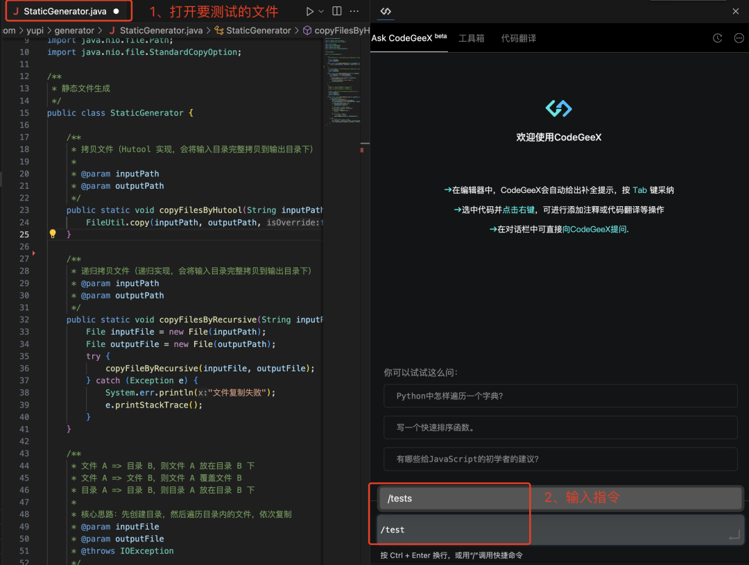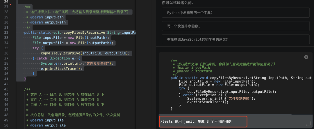为了提高生成的准确度,我更建议大家选中要测试的方法,然后在输入 /tests