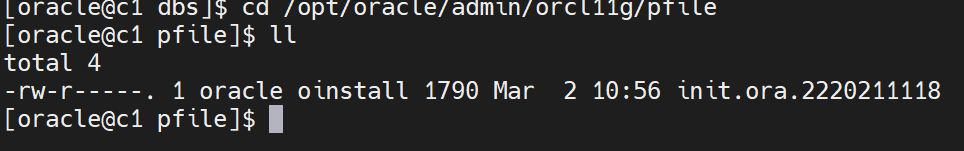 cd /opt/oracle/admin/orcl11g/pfile