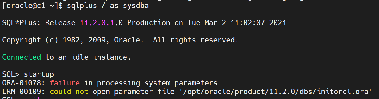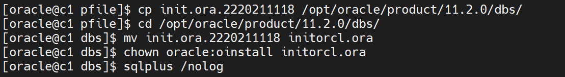 cp init.ora.2220211118 /opt/oracle/product/11.2.0/dbs/ #根据实际来操作