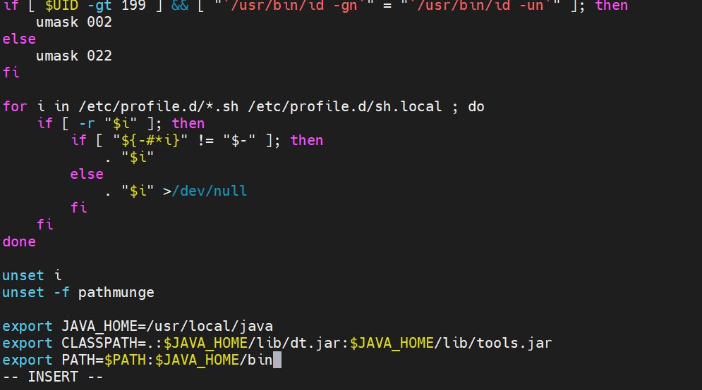 vi /etc/profile #环境变量设置,尾部添加如下内容
