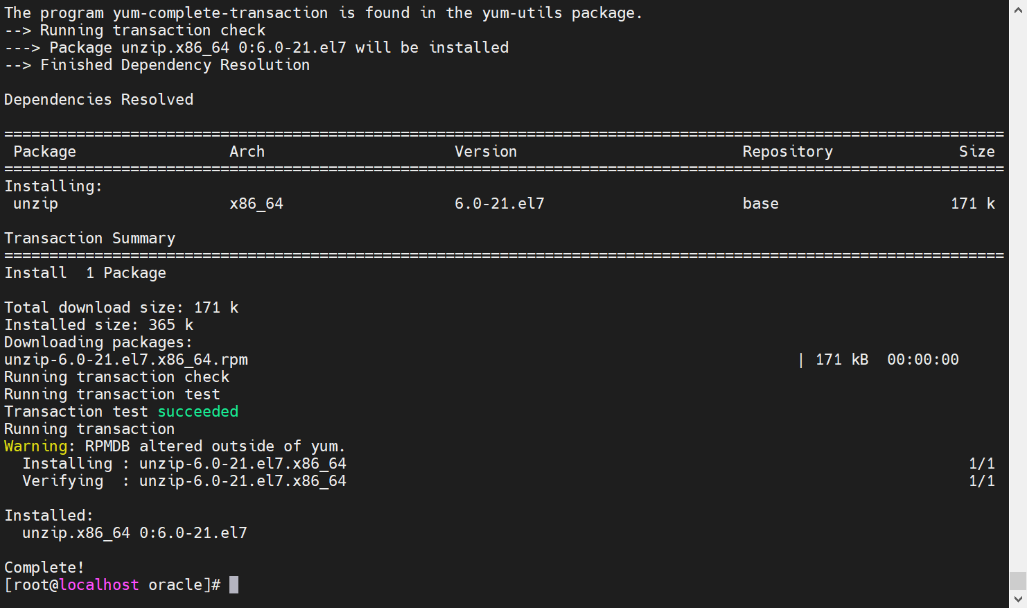 yum -y install unzip #安装解压命令