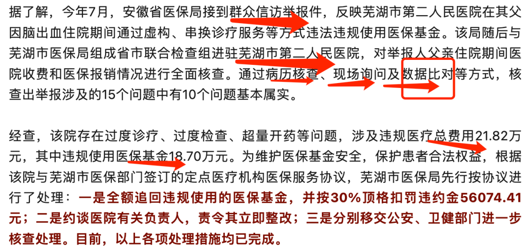 然后就顺藤摸瓜搜索了一下这件事的前因后果,发现 经济观察报 在2023-12-03 发布的:《名校博士自述:我是怎样查出医院多收我爸10万医疗费的》,讲清楚了名校博士是如何与违法违规套取医保基金、侵害老百姓“救命钱”的医疗蛀虫战斗的。