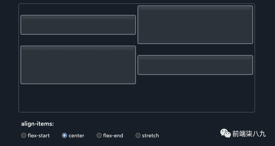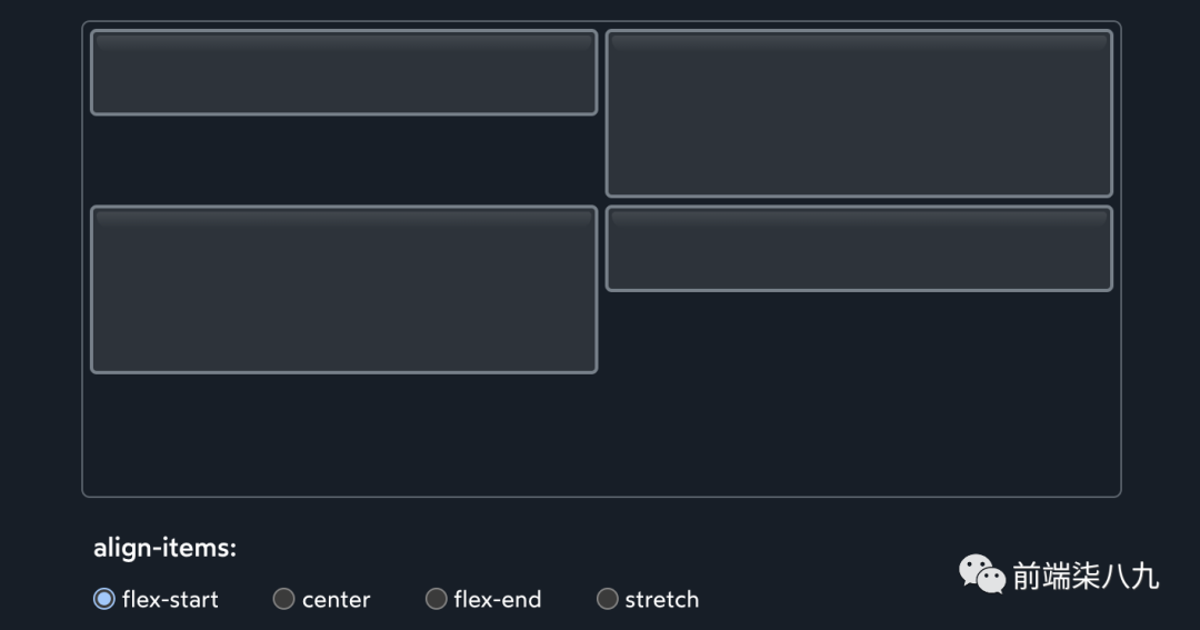 在align-items中,有一些与justify-content相同的选项,但并「没有完全的重叠」。