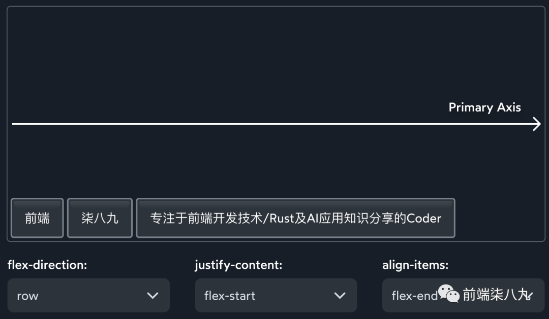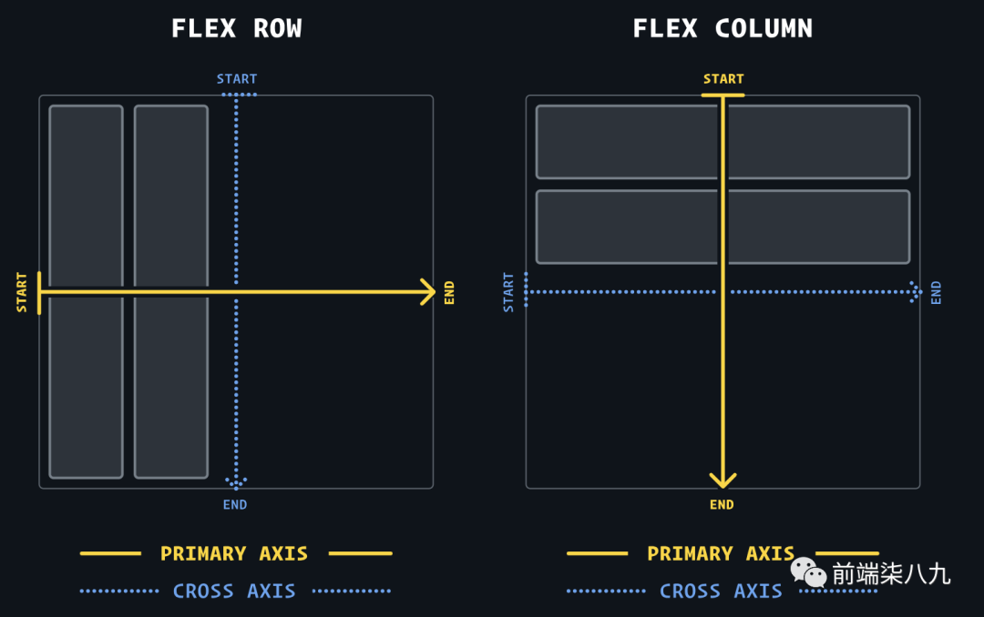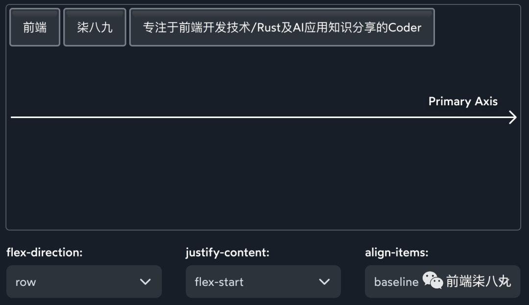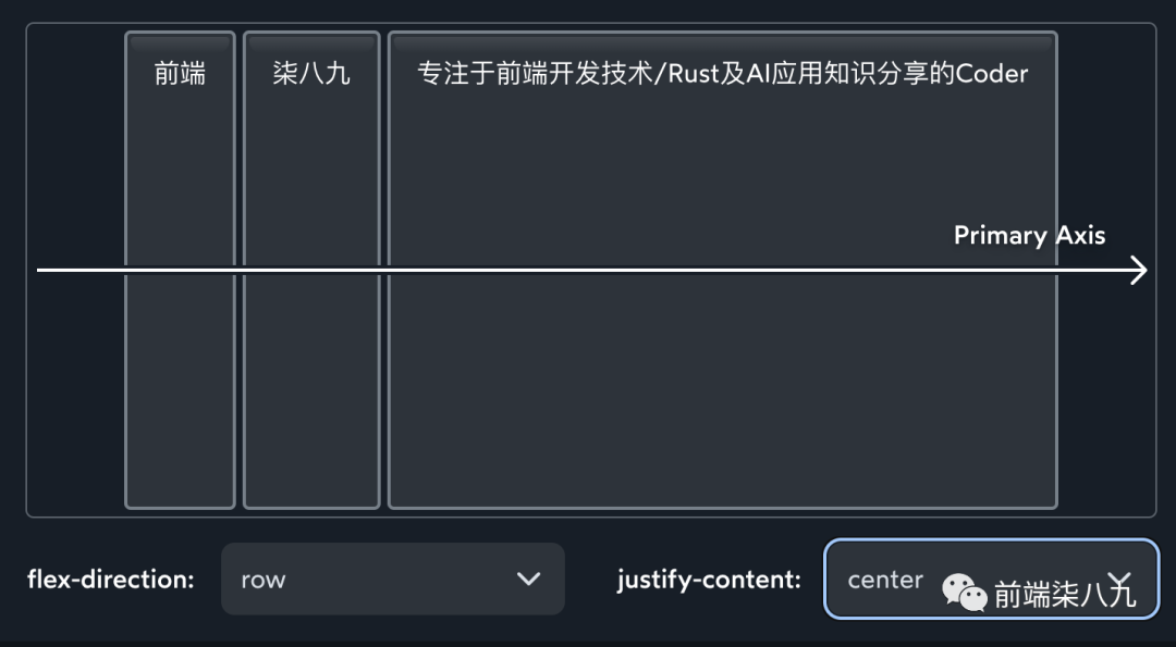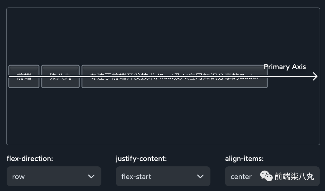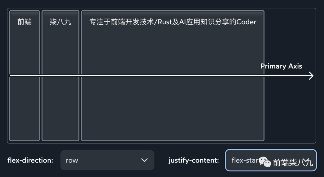 「Flexbox 中的一切都与主/交叉轴有关」。例如,justify-content将沿主轴分布子元素,无论主轴是水平还是垂直,它的工作方式都完全相同。