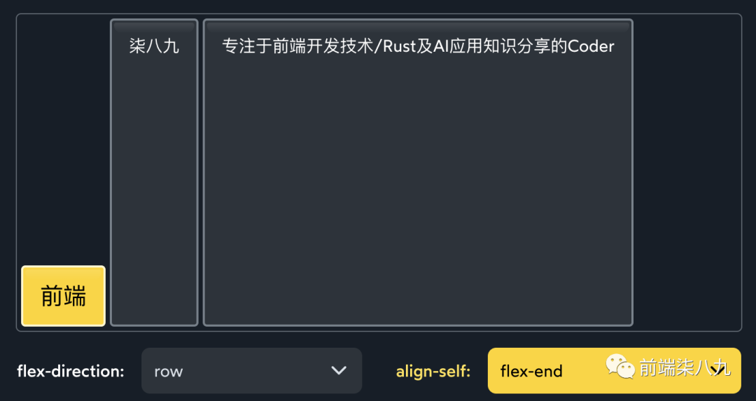 使用flex-direction: row时,「主轴水平运行,从左到右」。当我们切换到flex-direction: column时,「主轴垂直运行,从上到下」。