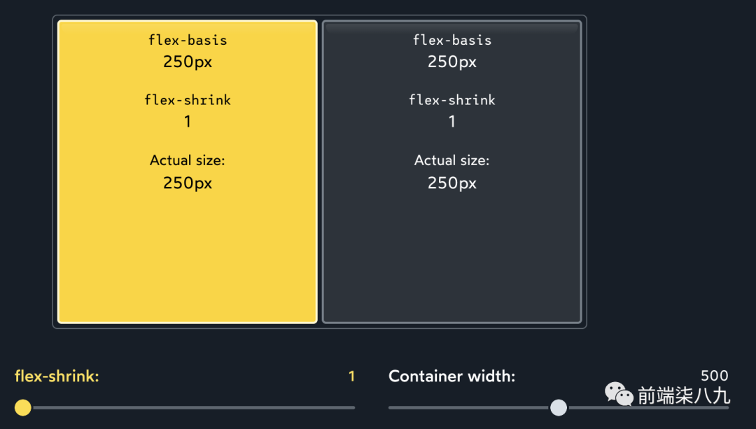 flex-basis和width设置了元素的假设大小。Flexbox算法可能会「将元素收缩到低于这个期望大小」,但「默认情况下,它们将始终按比例缩放,保持两个元素之间的比例」。