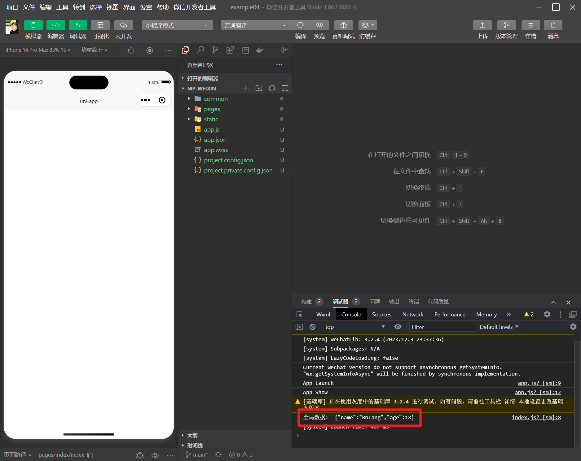 使用全局数据,只需要在 App.vue 当中通过 globalData 来保存数据 然后在其他页面当中通过