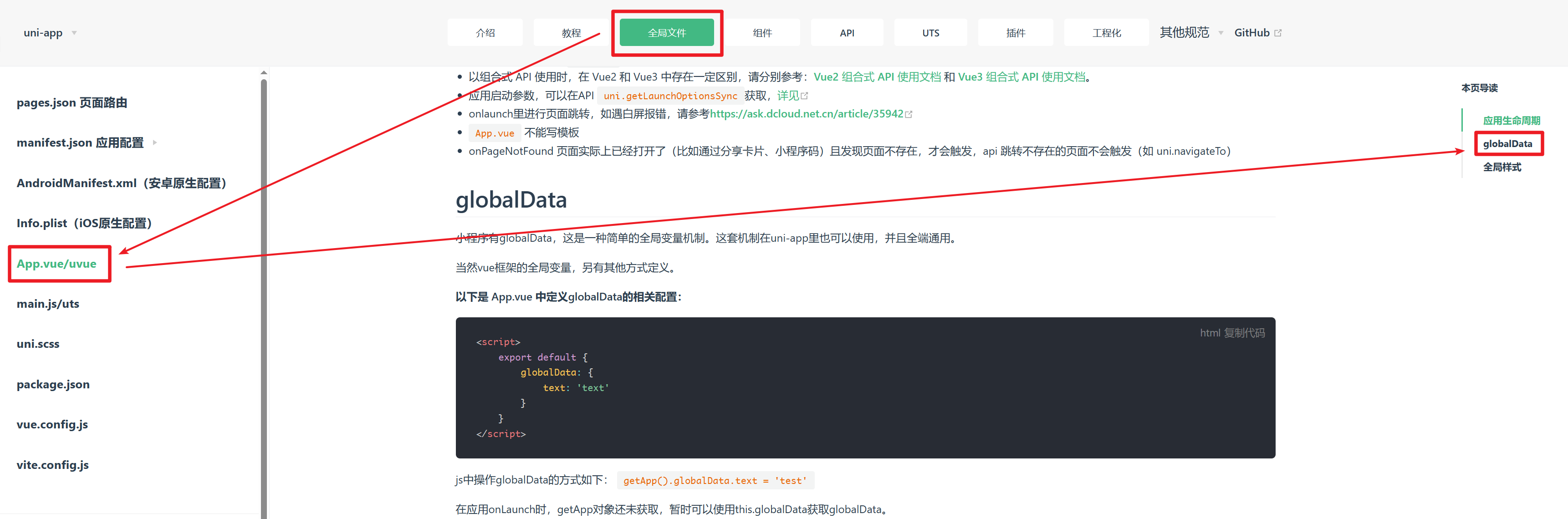 globalData全局文件App.vue/uvueApp.vue/uvue 就可以发现这里有 globalData