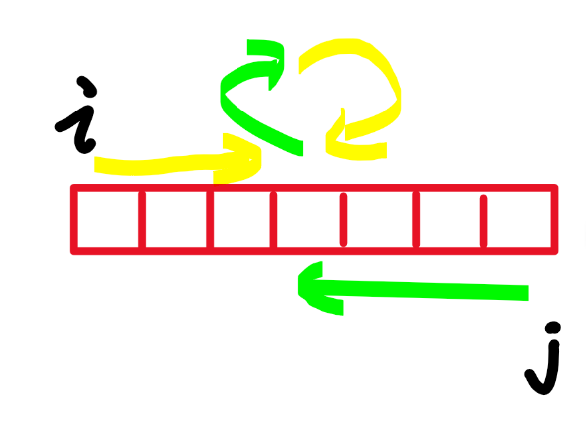 右边 j 会从 n-1开始不断地左移,直到遇到 j 所在的元素 比partval小,停止左移;