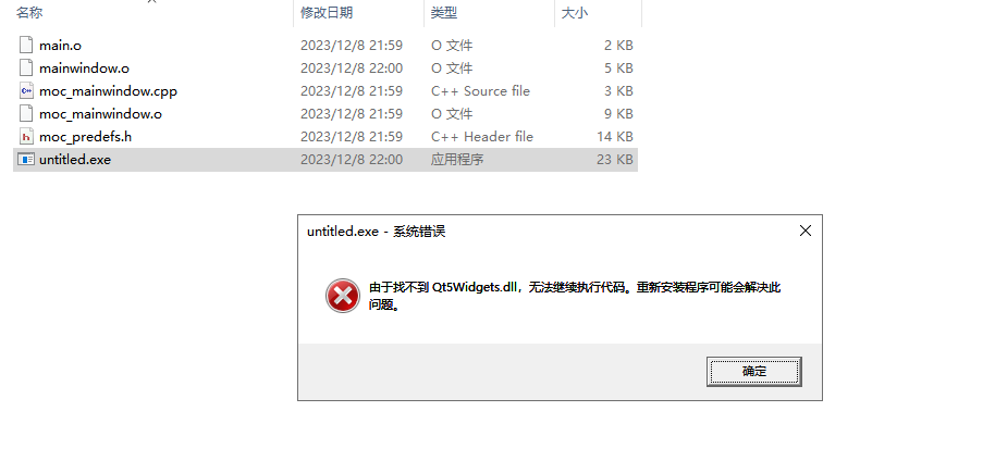 untitled.exe(或您的程序名称)libgcc_s_dw2-1.dlllibstdc++-6.dlllibwinpthread-1.dllQt5Core.dllQt5Gui.dllQt5Widgets.dllplatforms/qwindows.dll当然,如果是手动拷贝文件而不适用打包命令,则只需要从Qt安装目录的bin目录中复制以下文件到您的程序目录: