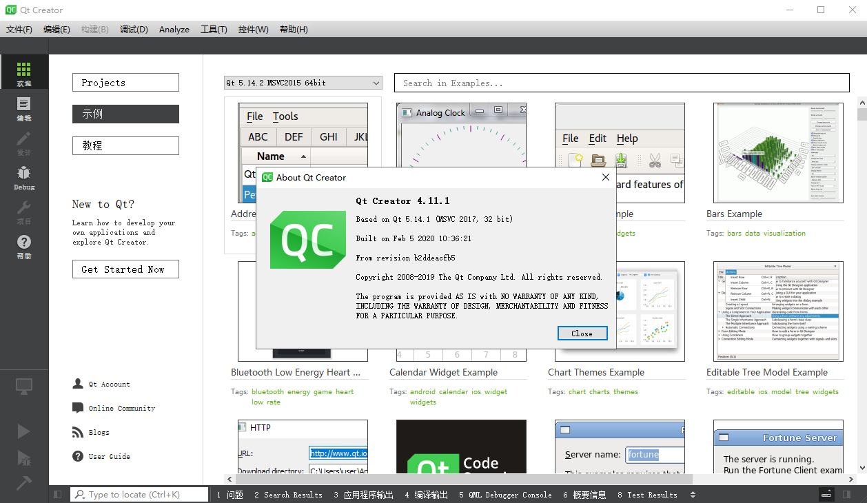 安装结束后就可以看到开始菜单的,Qt Creator 4.11.1 (Community)程序,直接打开该程序就可以进入到Qt的开发页面中,如下图所示;